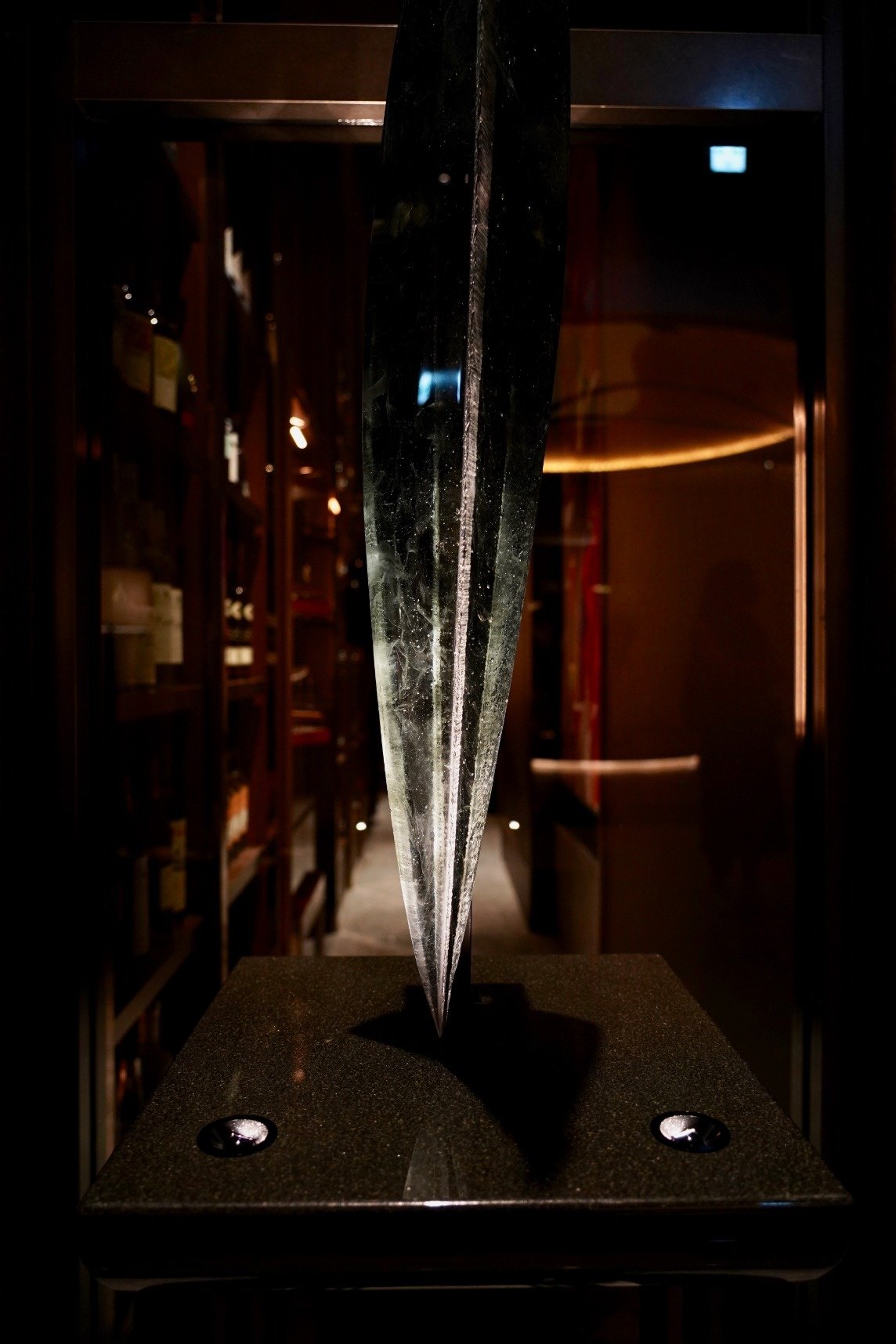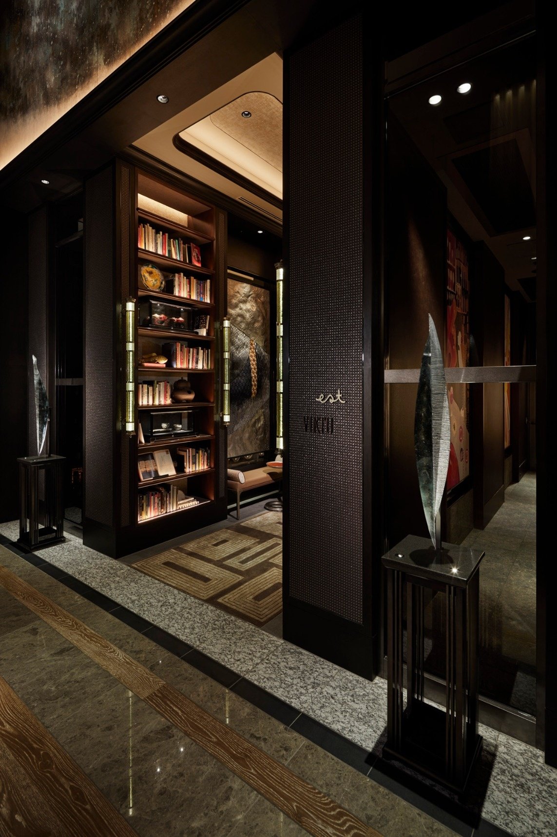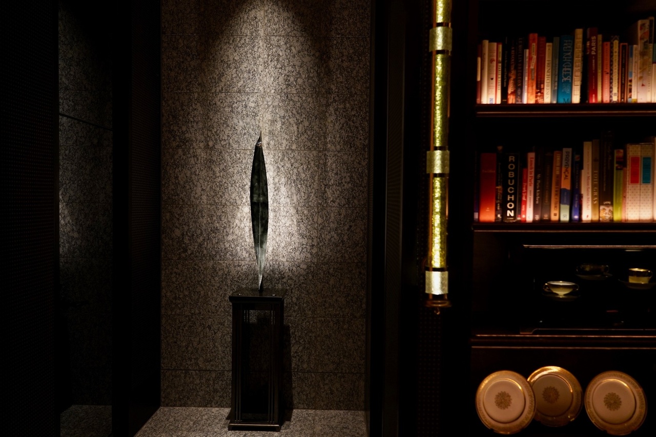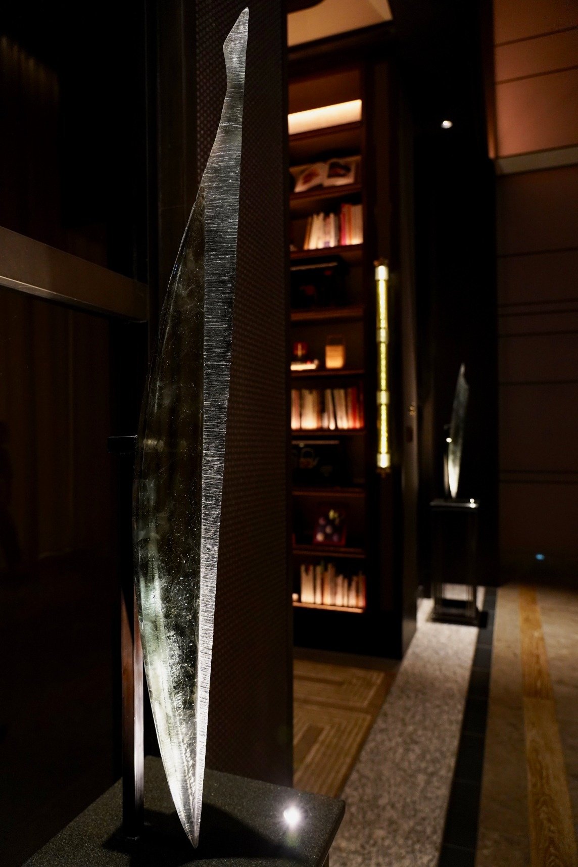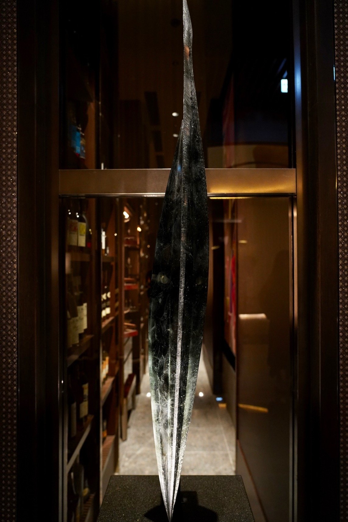 FOUR SEASONS HOTEL TOKYO AT OTEMACHI Library フォーシーズンズホテル東京大手町イブラリー回廊、出入り口両脇を飾る上前功夫によるガラスのオブジェ二対(W250 x H1250)