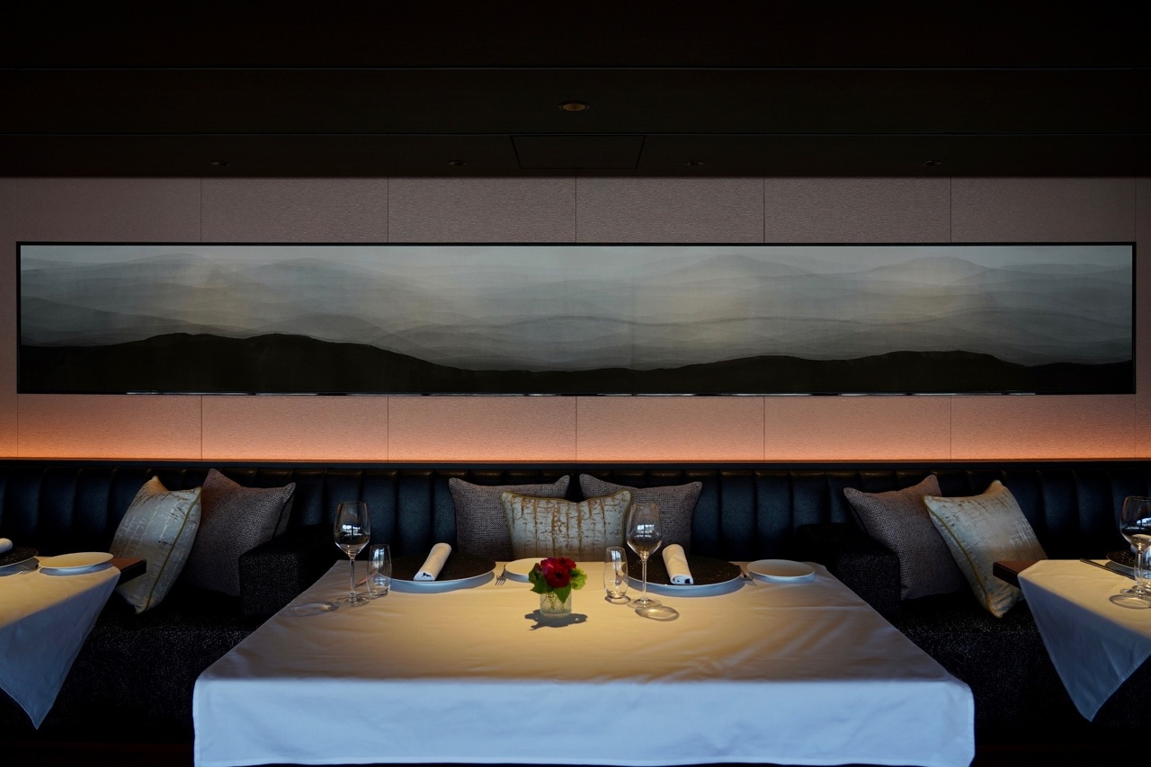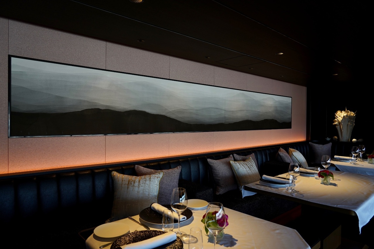FAUCHON HOTEL KYOTO 10F Restaurant, Guest room FAUCHONホテル京都 Artist : 金田朱杏子 Kaneda Kazuko Area : 10F Restaurant Material : 墨 (松煙墨)、 越前和紙 Area : All Prestige Suites Material : 墨 中国画仙紙 パネル