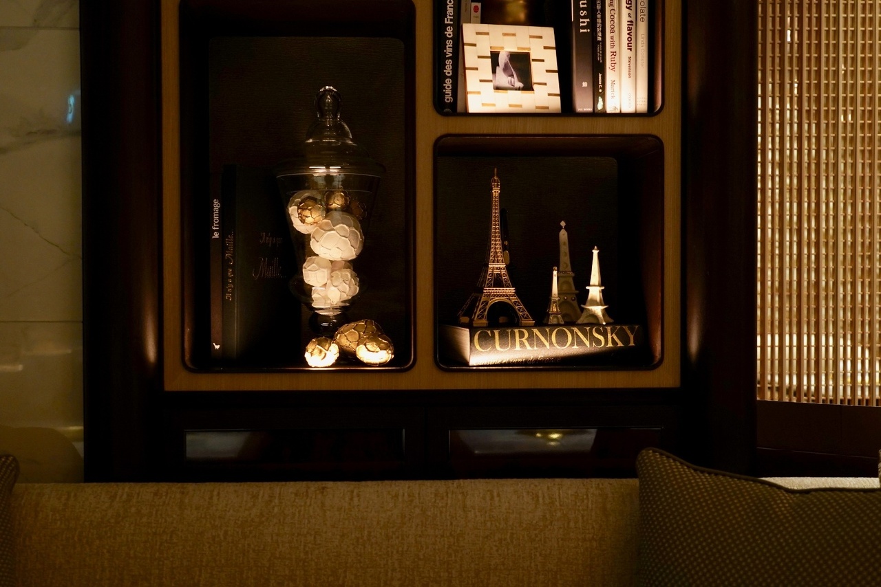 FAUCHON HOTEL KYOTO 2F Lounge FAUCHONホテル京都 グルメやスイーツなど 「食」 にこだわった本のセレクト。 このために制作したアートワーク、撮り下ろしの写真などアシンメトリーを意識しながら遊び心をふんだんにこだわりのライブラリーディスプレイ。モリ川による極小フォトも点在。 Coordinate: 金田みやび Miyabi Kaneda(Gallery Ten) Area : 2F Lounge library
