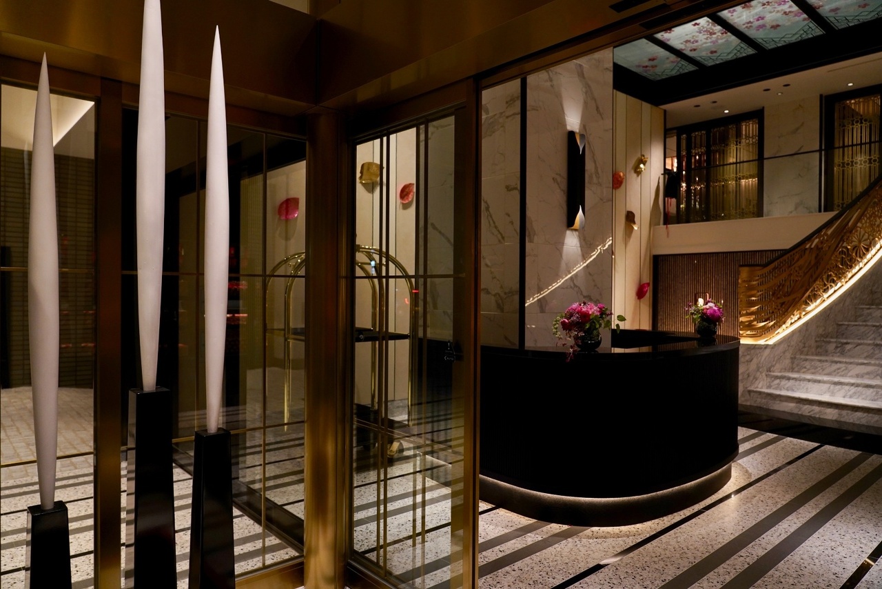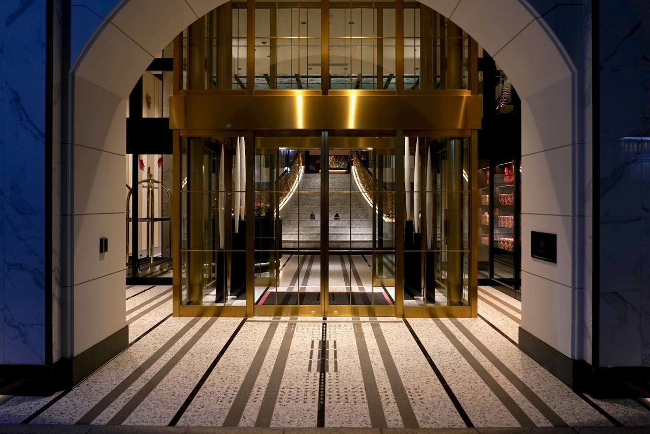 FAUCHON HOTEL KYOTO 1F Windbreak room FAUCHONホテル京都 「白の連想 Association with White」ファサードを飾るに相応しい ‘無限の上昇’ を具現化した作品。 Artist : 板橋廣実 Itabashi Hiromi Area : 1F 風除室 Windbreak room Material : 陶器 ceramics